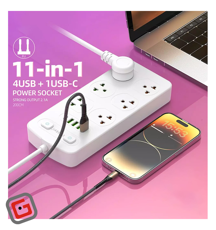 چهار خروجی فست شارژ USB، یک خروجی تایپ سی | شش خروجی یونیورسال برق شهری (قابلیت اتصال انواع سر سوکتهای EU-AU-US-UK)