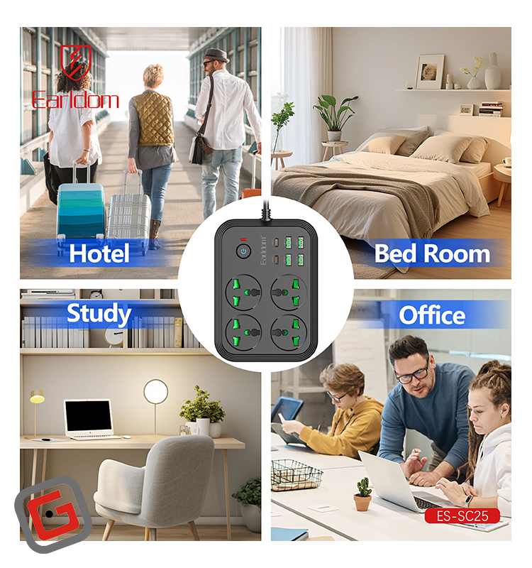 چهار خروجی فست شارژ USB، دو خروجی تایپ سی | چهار خروجی یونیورسال برق شهری (قابلیت اتصال انواع سر سوکتهای EU-AU-US-UK)