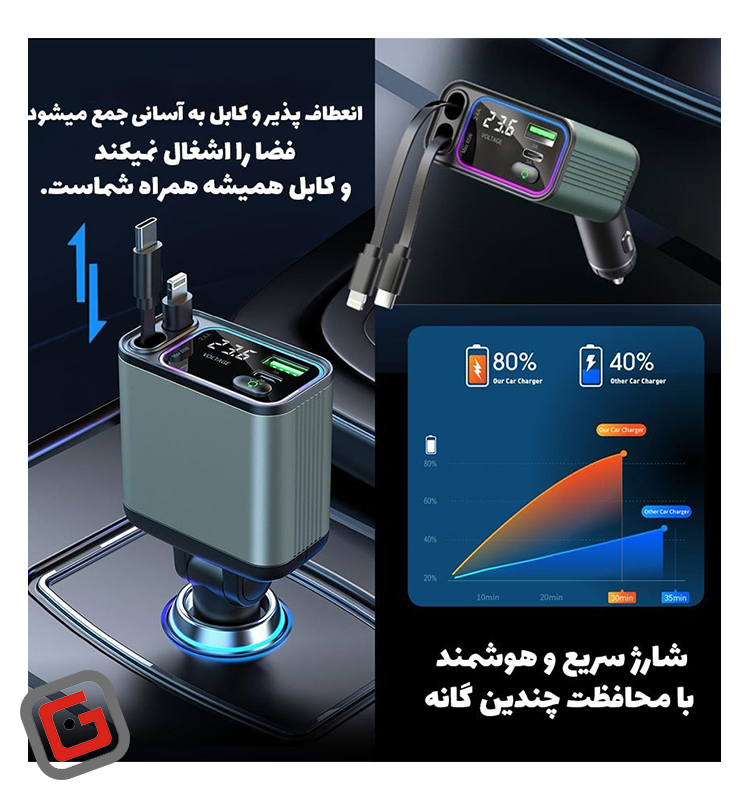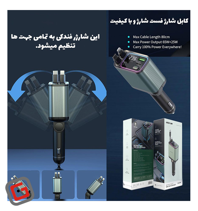 شارژر فندکی فست‌شارژ گرین لاین 90 واتی