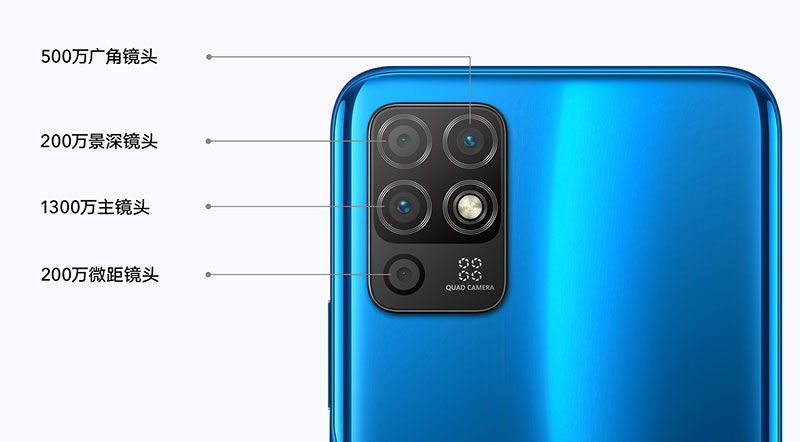 در پنل پشتی این گوشی شاهد یک ماژول دوربین چهارگانه هستیم که شامل یک دوربین اصلی 13 مگاپیکسلی، یک دوربین 5 مگاپیکسلی فوق عریض، یک دوربین 2 مگاپیکسلی ماکرو و یک دوربین 2 مگاپیکسلی تشخیص عمق میشود. همچنین یک فلش LED در زیر این ماژول دوربین چهارگانه نیزقرار گرفته است.
