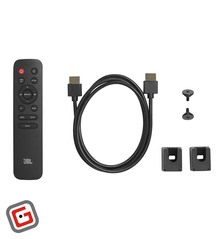 دکمه برای اتصال به دیوار، ریموت کنترل، یک عدد کابل MDMI