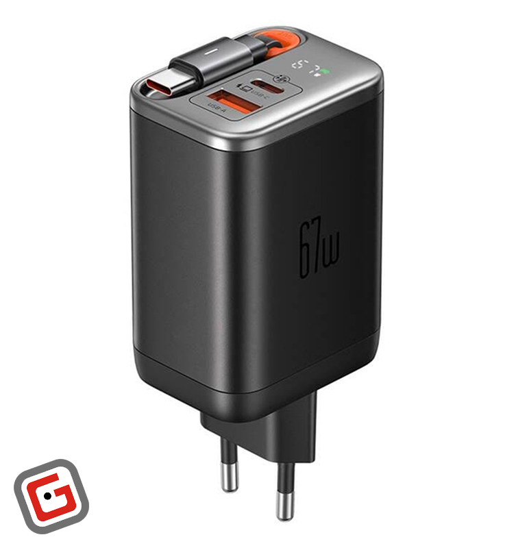 مجموعا 3 پورت : یک کابل خروجی تایپ سی+ 1 پورت Type-C و یک پورت USB-A