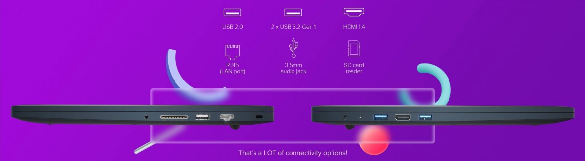 از پورتهای ردمی بوک پرو میتوان به دو عدد پورت USB-A 3.2، یک عدد پورت USB-A 2.0، یک عدد پورت HDMI، ورودی جک 3.5 میلیمتری و درگاه میکرو اسدی اشاره کرد که نبود پورت USB-C کمی عجیب است.