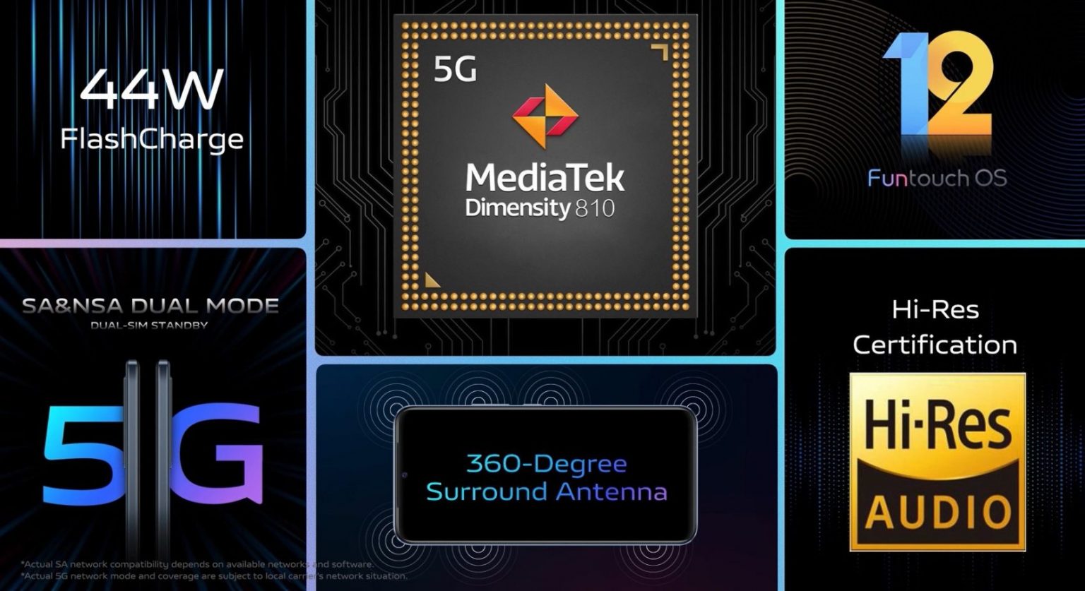 ویوو برای این گوشی یک پردازندهی شش نانومتری دیمنسیتی 810 فایوجی ساخت مدیاتک به همراه پردازندهی گرافیکی Mali-G57 در نظر گرفتهاست که با سیستمعامل اندروید 11 و رابط کاربری Funtouch12 به بازار عرضه میشود