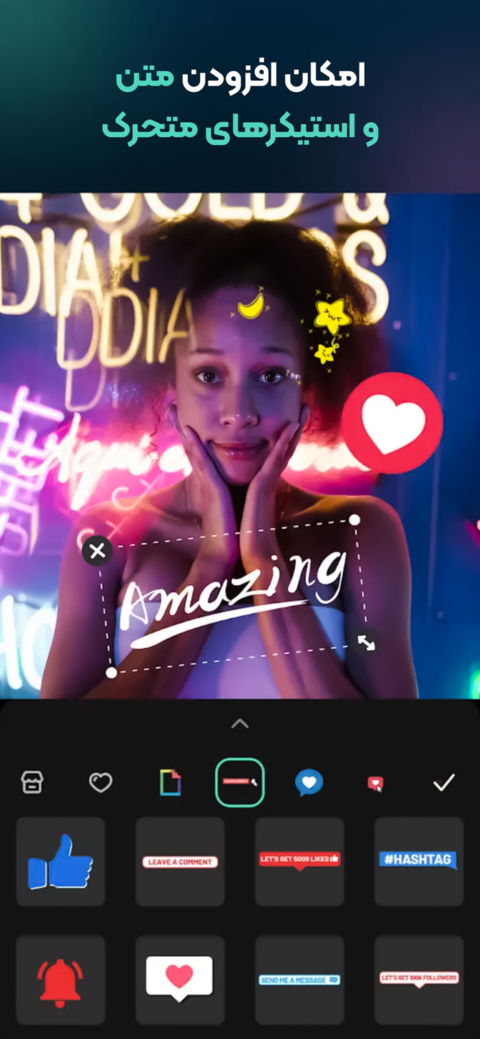 •استیکرها، افکتها و فونتهای تعاملی