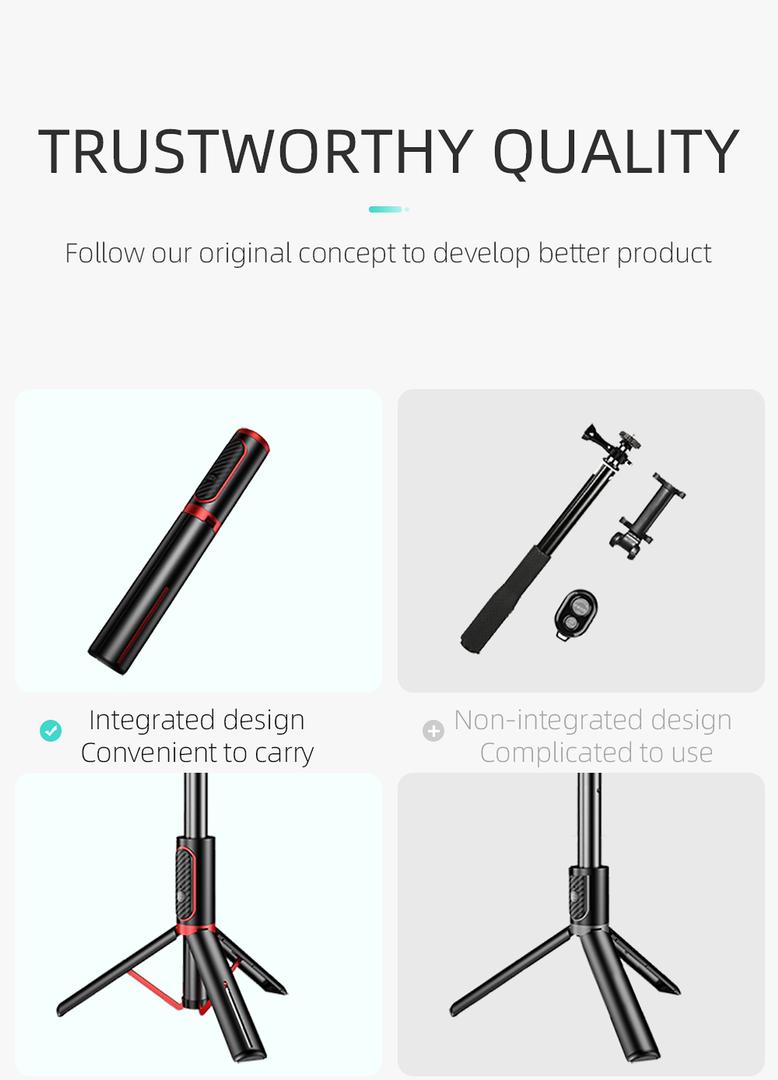 دارای ریموت کنترل بلوتوث دار، دارای سه پایه قوی ، ۳۶۰ درجه گوشی افقی و عمودی
