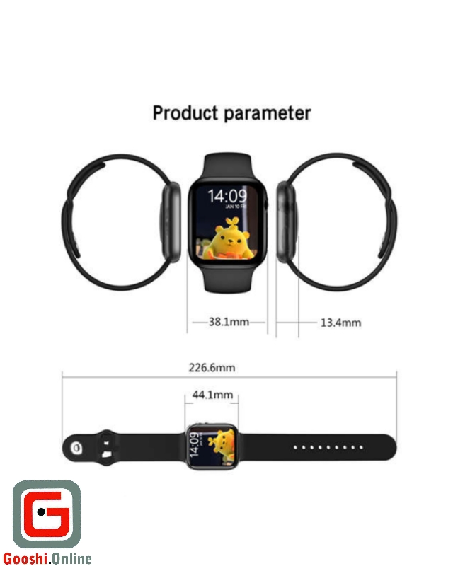 گام شمار، ده ها مود ورزشی، سنجش ضربان قلب، سنجش فشار خون، سنجش اکسیژن خون، سنجش دمای بدن، کنترل موزیک، دوربین گوشی و ضبط صدا، سنجش میزان خواب، امکان مکالمه (دارای میکروفون و اسپیکر)، نمایش منو ساعت به 5 مدل مختلف، بند قابل تعویض با تمامی بند های اپل واچ سایز 44/42، ماشین حساب، نمایش آب و هوا، تایمر، نمایش اعلان و پیام های گوشی، پشتیبانی از زبان فارسی جهت نمایش پیام ها، یادآور نوشیدن آب