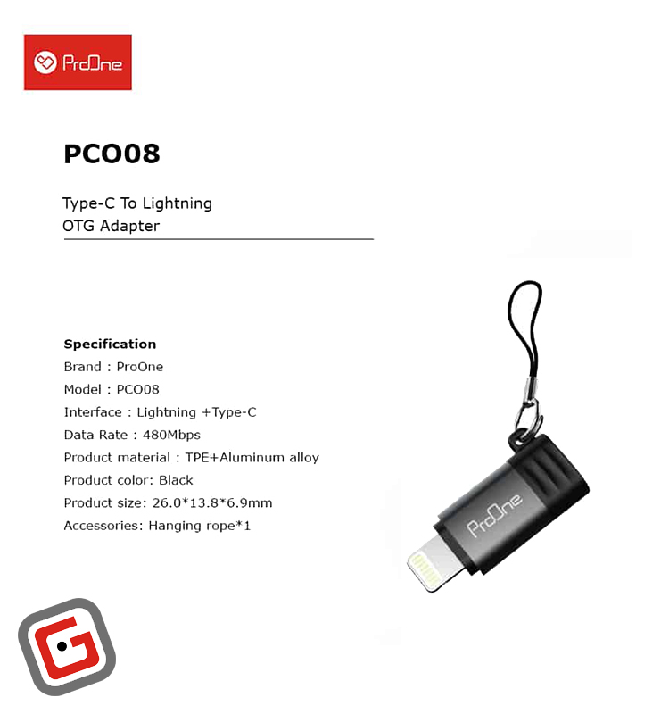 مبدل Type-C به لایتنینگ پرووان مدل PCO08