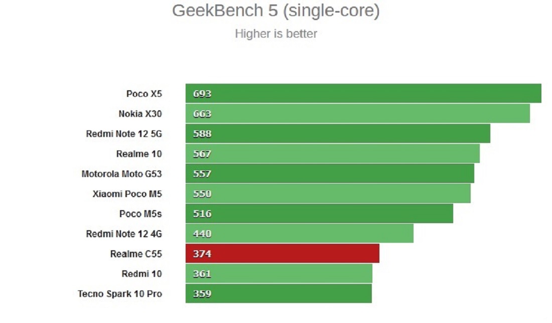 تست بنچمارک پردازنده Realme C55 ( تک هسته ای ) از سایت GeekBench.com