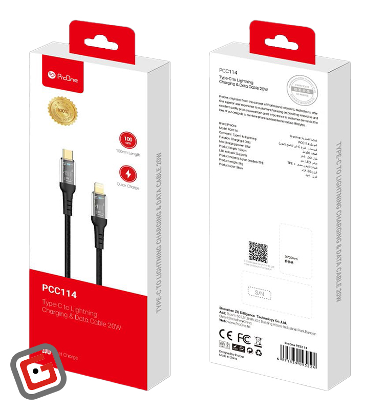 کابل شارژ 20 واتی لایتنینگ پرووان مدل PCC114 به طول 1 متر