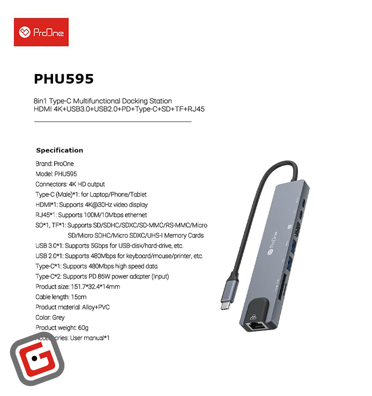 هاب 8 پورت USB-C پرووان مدل PHU595