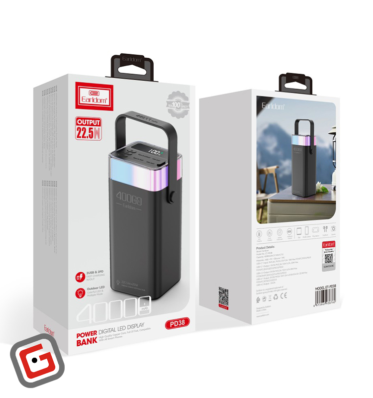 پاور بانک فست شارژ ارلدام مدل ET-PD38 ظرفیت 40 هزار میلی آمپر ساعت