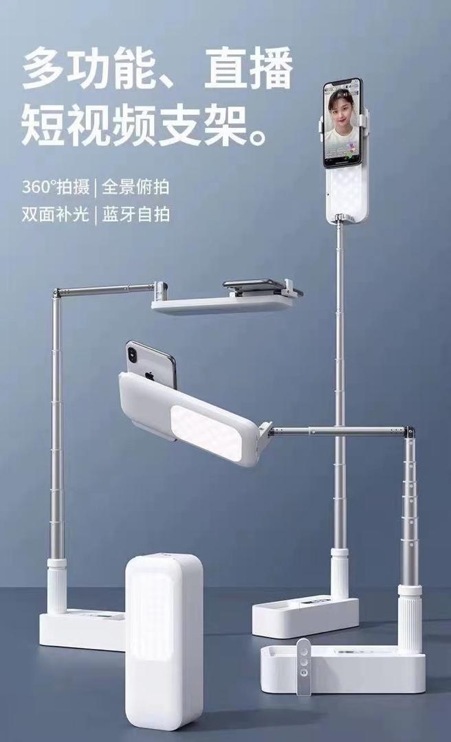 چرخش ۳۶۰ درجه، ریموت کنترل بلوتوثی با برد 10 متر، دارای سه عملکرد مختلف امکان انجام ویدو و عکسبرداری وعکس سلفی، با قابلیت چند زاویه مختلف، طراحی تلسکوپی، دارای چراغ LED پور نور، نور پانورمادو طرفه، دارای ۱۰۰ عدد لامپ، دارای ۷ نور مختلف نور دورنگ، ارتفاع ۱۳۰ سانتی متری